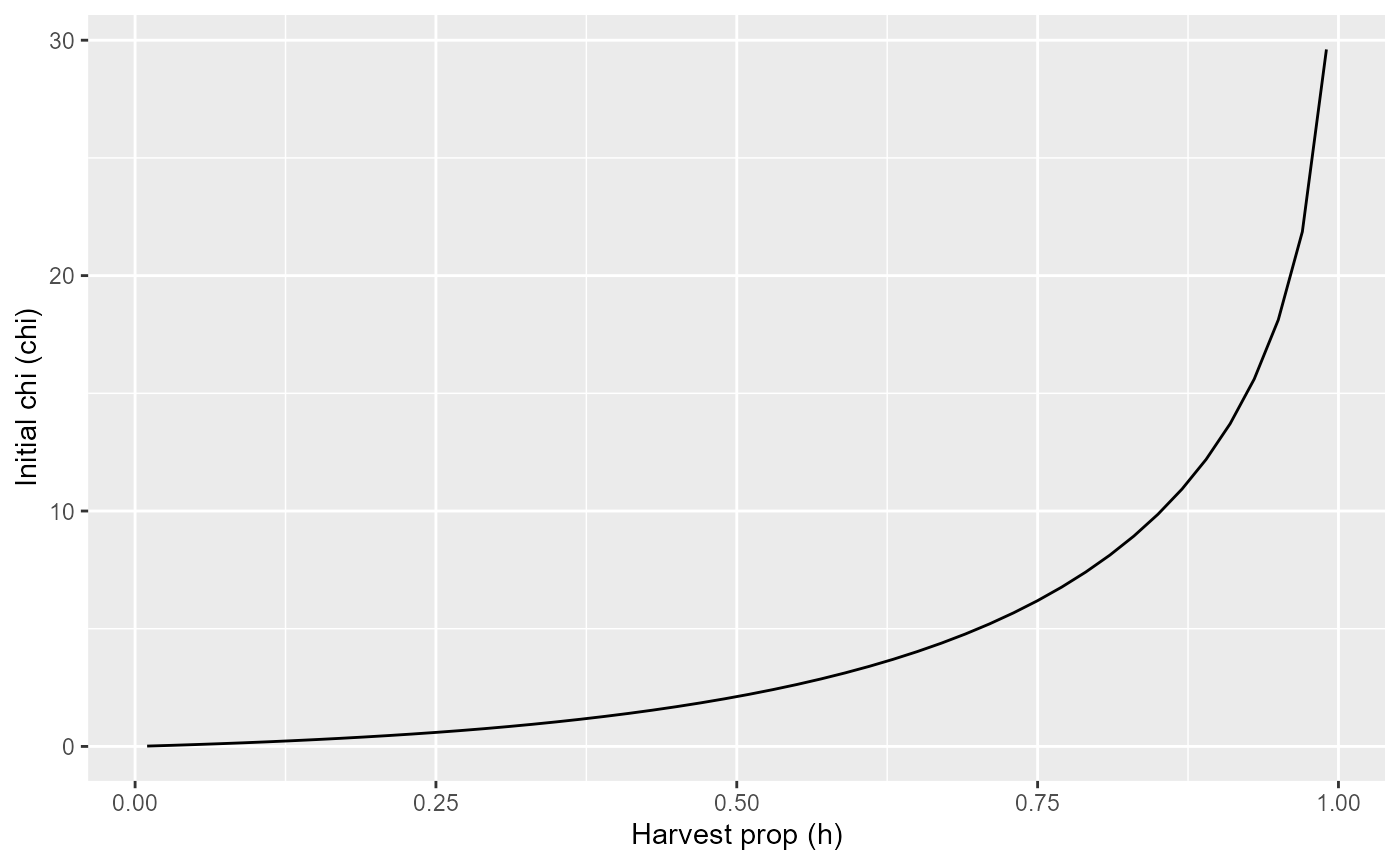 labs(x="Harvest prop (h)", y="Initial chi (chi)")