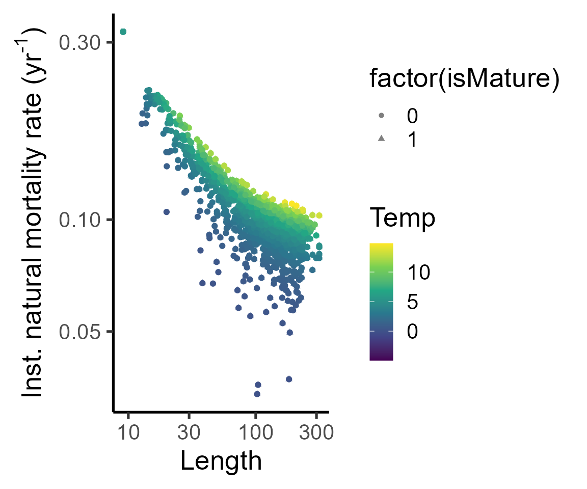 labs(x="Length", y=expression("Inst. natural mortality rate (yr"^"-1"*")"), col="Temp", )+