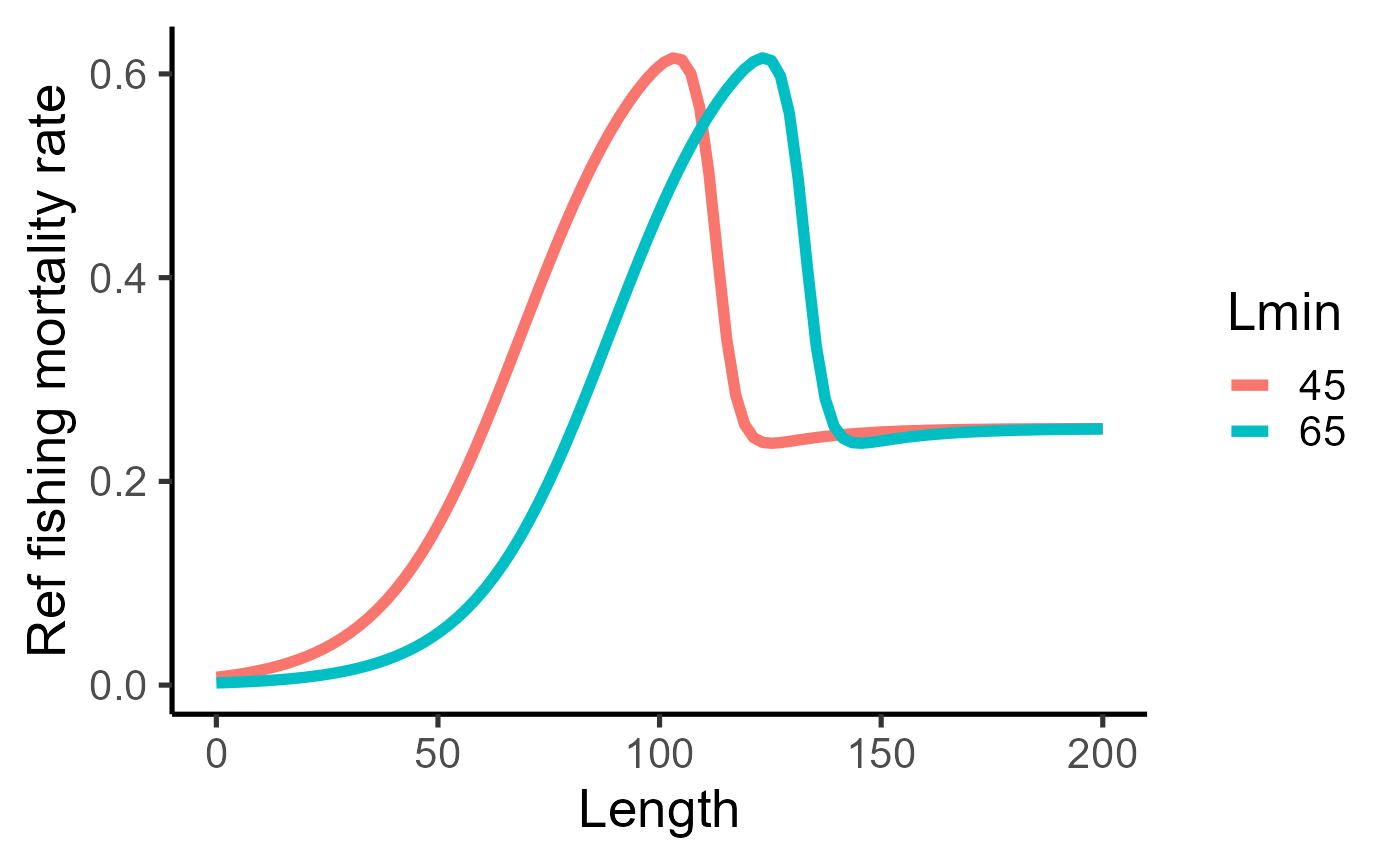 labs(x="Length", y="Ref fishing mortality rate", col="Lmin")+