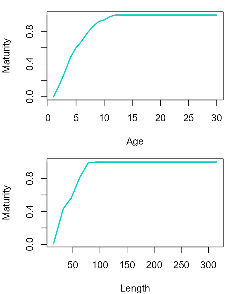 dat[i,] = c(fish$get_state(), fish$naturalMortalityRate(temp), temp, fish$produceRecruits(0.8*tsb*1e6, temp), 0.8*tsb) # Assuming SSB is 80% of TSB, since we are not simulating a population